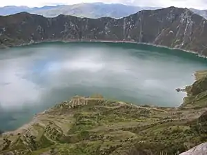 The small village of Quilotoa lies to the southwest of the lake, and basic accommodation run by the local indigenous people is available. Zumbahua is the next nearest town. Quilotoa developed itself since its early days into one of the most important tourist attractions of the country, and the government provided the infrastructure to support it. The Quilotoa crater is protected by the Reserva ecológica Los Illinizas.