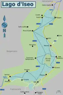 Lake Iseo (also known as Sebino - Lago d'Iseo in Italian) is in the eastern part of Lombardy, Italy.