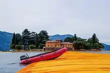 From June 18 to July 3, 2016, the Bulgarian-American artist Christo has created a series of floating walkways, The Floating Piers on the waters of Lake Iseo. The installation consisted of about 3 km of 16 m wide floating pontoons consist of cubes of high density extruded polyethylene covered by an orange synthetic fabric. Piers are around 4, the first, half a kilometer long, linking Sulzano and Peschiera, the second, about 1 km from Peschiera headed for the island of San Paolo, but before reaching it branched into two (700 and 250 m) creating a sort of triangle and forming a circumnavigation around the small private island. Christo and his wife Jeanne Claude had first developed this project for the mouth of the Rio de la Plata in Buenos Aires, but the local authorities never granted the necessary permissions. In 1975 it was the turn of Tokyo, but also in this case the Japanese authorities denied permission.