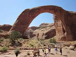 - 🌍 Rainbow Bridge National Monument, ☏ +1 928 608-6200. A small monument located about 50 miles uplake (about a two-hour boat ride) from the Glen Canyon Dam, set around the world's largest known natural bridge. The monument can be accessed from a wharf on the lake, followed by a short walk up the canyon.