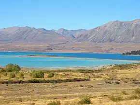 Lake Tekapo is a lakeside resort village in the Mackenzie Country in the South Island of New Zealand. It gets its name from one of the Southern Lakes in the Southern Alps.