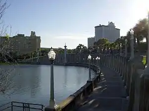 The Florida boom resulted in the construction of many significant structures in Lakeland, a number of which are today listed on the National Register of Historic Places. This list includes the Terrace Hotel, New Florida Hotel (Regency Tower, now Lake Mirror Tower), Polk Theatre, Promenade of Lake Mirror, Polk Museum of Art (not a product of the 1920s boom), Park Trammell Building (formerly the Lakeland Public Library and today the Lakeland Chamber of Commerce), and others. The city also has several historic districts with many large buildings built during the 1920s and 1940s. The Cleveland Indians held spring training there from 1923 to 1927 at Henley Field Ball Park. Parks were developed surrounding Lake Mirror including Barnett Children's Park, Hollis Gardens, and the newest, Allen Kryger Park.