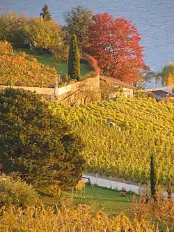 Lavaux is internationally famous as a terraced wine-growing region on the shores of Lake Geneva (Lac Léman) in western Switzerland. It covers the territory roughly from Lausanne to Montreux, extending to an altitude of roughly 500 meters above lake level and including 6 lake shore villages and the city of Vevey.