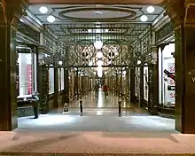 - π Victoria Quarter including County Arcade, Briggate. When the Victorian civic authorities sought to improve the sights and foul smells of Briggate and the city centre, they demolished some of the city's dirtiest yards, alleyways, shambles and lanes and built covered shopping arcades filled with fine establishments. These catered for the refined tastes of the growing moneyed classes of Leeds. This rebuilding continued into Edwardian times and the legacy is some of Europe's finest, most elegant shopping locations. Today these arcades are home to some of the most exclusive designer shops in Great Britain (Vivienne Westwood, Hugo Boss, Luis Vuitton and Harvey Nichols to name a few).