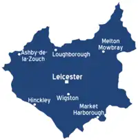 Leicestershire is a county in the East Midlands region of England. Its traditional capital is the county city of Leicester.