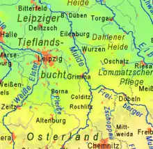 Leipzig Lowlands is a plain in Saxony, Germany. It is bordered in the south and east by the Central Saxon Hills. The latter is known as Saxony's "land of castles", including several (mostly medieval and Renaissance) mansions, fortresses, churches and monasteries as well as neat old towns.