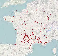 Locations of the most beautiful villages of France in 2014.