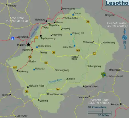 The main roads in Lesotho are similar to minor roads in Europe β they are sealed, and free of potholes. The A1 road (aka 'Main North') is tarred from Maseru to Mokhotlong, and the A2 (aka 'Main South') is tarred from Maseru to Qacha's Nek. The roads to Roma, Mohale Dam, Semonkong and Katse Dam are also tarred. For the visitor, the only unsealed road you are likely to use is the last 20km to Malealea, which is easy in a saloon (sedan). Note that the road running east-west to Thaba Tseka is now sealed and in good condition.