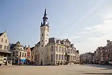 - π Town Hall, Grote Markt 58. Built in the 18th century in Rococo style. The belfry tower dates back to 1369, and is a