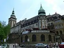 - 🌍 Palace Hotel (Hotel Palota), Erzsébet sétány 1. (10 km from the Miskolc, the city buses don't visit Lillafüred very often. (Time table of bus 5)), ☏ +36 46 331411, +36 46 400126. 133-room hotel built between 1927 and 1930. The neo-Renaissance hotel is one of the best known buildings of Miskolc-Lillafüred, in a picturesque valley. Single/double/suite Ft 33 000/40 000-47 000/56 000-62 000.
