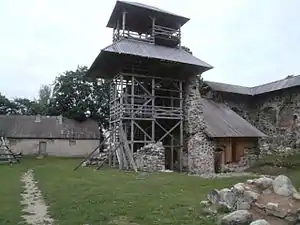 - 🌍 Castle ruins, Burtnieku iela (behind the local history museum). Built in the 13th century as a fortified residence of the Archbishop of Riga. During the 15th and 16th centuries, the castle was almost constantly inhabited by the office holders. Damaged during the Livonian War, it was turned into a pile of stones in 1602 during the Polish-Swedish war. It was partially restored in the 1990s, and now there's a piece of wall, a gate and a tower standing.