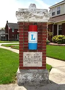 The Lincoln Highway (1913-1930) was the original transcontinental highway in the United States. It was one of various "auto trails", a motley assortment of named routes marked by private organizations and trail associations (such as the Lincoln Highway Association) in the early days of the mass-produced automobile. These routes pre-dated the numbered US Highway system, which was established in the mid-1920s.