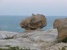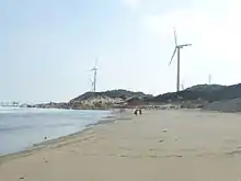 - Visit a beach. The peninsula's west coast, facing Jiuzhen Bay (旧镇港) is not easily accessible, as it is used for agriculture and aquaculture. Good sandy beaches are found on the peninsula's east (ocean) coast, primarily in two large bays (Da'ao Bay and ...), which are separated by a rocky promontory (presumably, one of the legendary aoo creatures). Swimming is not officially encouraged, on account of wind and waves, and most tourists come here just to stroll or wade in the shade of wind mills. Nonetheless, the water stays fairly warm into early November. Some people come here for kitesurfing as well.