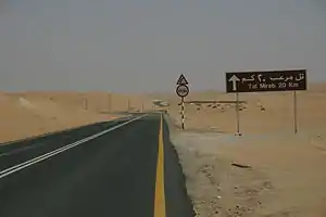 To get to Tal Mireb road follow the brown signs as shown in the picture. Markers can be found along the main road as well as the roundabouts in Mezzaira'a. It's a one-mile drive to the road from the main roundabout in Mezzaira'a. The dune itself is about 25 km along the road, be sure to have petrol for the round trip, as the road is hilly.