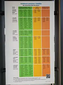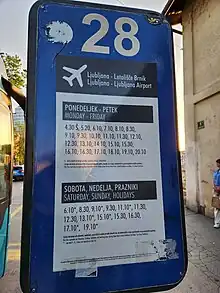- Arriva Bus takes 50 min to the main bus and railway station ("Ljubljana AP", Stand 28), with several stops. It runs every 30 min M-F 05:20-20:10, and Sa Su holidays 06:10–19:10. The fare is €4.10, pay the driver on boarding; cannot pay with Urbana card. (May 2023)