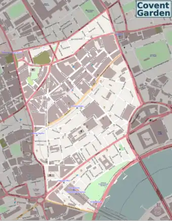 - π Covent Garden Piazza and Central Market (Tube: Covent Garden PIC ). Once an important working market, and the backdrop for the musical My Fair Lady, Covent Garden today is a covered shopping mall with shops predominantly selling clothing, but also gifts and cosmetics, as well as stalls selling handicrafts (Tu-Su) or antiques (M), and restaurants. It's well worth a visit just for the attractive ambience, with classical musicians busking in the lower part of the market and a famous location for street entertainers. There is a popular pub, The Punch and Judy Tavern at the western end, with a large balcony overlooking a square where street entertainers perform. At the eastern end, the corresponding balcony is occupied by Chez Gerard, a restaurant selling relatively-expensive but good continental cuisine. Most shops are open daily 10AM-7PM, but may close earlier on Sundays.