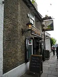 🌍 The Dove, 19 Upper Mall, W6 9TA (tube: Ravenscourt Park  DIS ), ☏ +44 20 8748-9474, . M–Sa 11AM–11PM; Su noon–11:30PM. This pretty 17th-century riverside establishment may have London's smallest bar (room just to the right of the entrance), as well as an outside seating area with river views. The famous Doves Press was named after this pub.