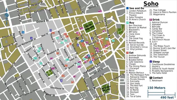 - Wander the streets. Soho is best discovered by wandering its streets. Take the less trodden paths and you will be amazed by the rabbit warren of streets and the seemingly endless number of cafes, bars, shops and more. Some highlights are the gay village on Old Compton St, Soho Square and a tea and cakes in one of Soho's great patisseries.