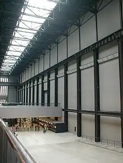 - 🌍 Tate Modern, Bankside (tube: Southwark JUB , Blackfriars CIR DIS ), ☏ +44 20 7887-8888, visiting.modern@tate.org.uk. Su-Th 10AM-6PM (last admission 5:15PM), F Sa 10AM-10PM (last admission 9:15PM). An enormous art gallery converted from the former Bankside Power Station, a visit to Tate Modern could easily take half a day. The gallery collects together contemporary and modern art from around the world, arranged thematically. The most stunning aspect of the building, is the enormous Turbine Hall, which plays host to a single piece of work commissioned for the space each year. An extension of the gallery has opened in a ten-storey building behind the existing power station. Permanent collection free but all donations welcome.