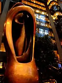 Go down Dearborn Street one block and take a left onto Madison Avenue to make a quick venture into Three First National Plaza (70 W Madison St). The atrium is attractive and full of plants, complemented by one very large Sir Henry Moore statue, Large Upright Internal/External Form. Henry Moore's titles are purposefully devoid of descriptive content. He argued:
