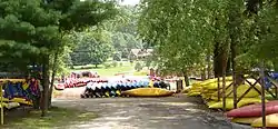 - π Mohican Adventures Canoe, Camp, Cabins, and Fun Center, 3045 State Route 3 South (Jct of County Rd 3 & SR-3), toll-free: +1-800-662-2663. An affordable place is offered for families to stay during their Ohio vacation. They offer canoe, kayak, raft, and tube trips down the Mohican River. They also have three 18-hole mini golf courses and 2 lighted go-kart tracks. Their campground has an indoor swimming pool and hot tub, a lake and pond stocked for fishing, a beach area, hiking and biking trails and 3 playgrounds. They also offer a Fun Package that provides for a day or two of fun for one low price.