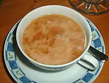 Soup is a common form of starter. Particularly popular is Hochzeitssuppe ("wedding soup"), a meat broth. On the North Sea coast a plant called arrowgrass, known locally as Stranddreizack or Röhrkohl, grows in salt meadows immediately by the coast and is prepared, like Grünkohl, as a thick stew. Other country dishes in the coastal region are Steckrübeneintopf and Birnen, Bohnen und Speck, both types of stew.