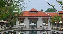- 🌍 Amantaka. Luxury resort by the Aman group, and probably the most expensive hotel in all of Laos. Set in the large garden estate and graceful colonial buildings of what was once the French hospital, just south of Phousi Hill. Airy, elegant and tranquil throughout, the décor and furnishings reflect the city's French colonial history. Only 24 "suites", some with private pools. Rates include two meals and free transport around the city with a branded tuktuk. If you can't quite justify a night, drop by for a US$10 Beerlao at the poolside bar/restaurant and soak in the ambience, which includes live traditional music in the evenings. From US$1000.
