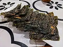 A speciality of Luang Prabang worth trying is khai phaen (ໄຄແຜ່ນ), made by collecting green algae from the Mekong, drying it as sheets and jazzing it up with sesame seeds, chillies, oil, etc. The end product resembles Japanese nori seaweed, and it's widely sold from street stalls, but is not meant to be eaten raw! Instead, find any bar and try it flash-fried, which transforms chewy plastic into a delicious, crispy, salty snack that goes well with beer.