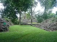 It is also well known for its ceramic whistle figurines, its stepped architecture, and its three ballcourts (three sculpted ballcourt markets were 'exported' to the Peabody Museum sometime after 1915), and for being the supposed discovery site of the Mitchell-Hedge's crystal skull.