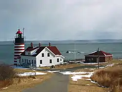 - 🌍 West Quoddy Lighthouse and Visitor Center, 973 S Lubec Rd, ☏ +1 207 733-2180. Memorial Day weekend to mid-October 10AM-4PM. Picturesque red-striped lighthouse is the most eastern in the US. Visitor center is housed in the 1858 lighthouse keeper's quarters. Exhibits and docents. Nice picnic area and views. Has tours on Saturdays. free.