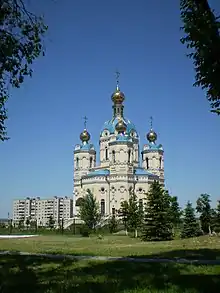 - 🌍 Sviato-Petropavlivs'kyi cathedral (Свято-Петропавлівський кафедральний собор), Kooperativnyi 2 ln. (Tram and bus stops "Rabkorovskaya" and ""Rodina" cinema" in KamBrod, then walk uphill from about between the two). One of the oldest temples in Lugansk diocese preserved during mass destruction. In 1905 the church was rebuilt, this time made of stone, with a bell tower, which was seven bells. By 1930, there were 89 icons in the church, 50 of them were three-tier iconostasis.