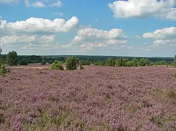 The Lüneburg Heath forms a natural region within the North German Plain, with its own geography and climate. It is a vast expanse of pine and birch forests, open heathland, pleasant farmland, market towns and picturesque villages; stretching from the lazy waters of the River Elbe to the north, the pine-clad hills of the Drawehn to the east, the flat depressions of the River Aller to the south and Wümme to the west, and the low ridge guarding Hamburg's southern flank to the northwest. Ideal for walking, cycling or just chilling out, it has become a popular tourist destination, especially for the cities and large towns that lie nearby.