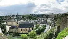 The city of Luxembourg is the capital of the namesake country, and with a population just above 130,000 it is the second smallest national capital of the European Union, after Malta's Valletta. Very different in character from the bustling metro areas of the continent, Luxembourg is defined by its hilly location and abrupt cliff faces afforded by the deep and narrow valley of the rivers Alzette and Petrusse it was built upon. The city has historically been an inconquerable fortress, which led it to be nicknamed the "Gibraltar of the North".