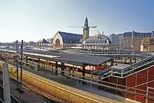 The imposing neobaroque 🌍 Gare Lëtzebuerg. the country's main railway station, adorned with a clock tower and huge windows is Luxembourg's main train station. It is relatively well served by connections from neighbouring countries. The railway station can be reached by the tram and most local buses. The city centre is within walking distance (around 1.5 km). The train station has a restaurant and a large newsagents, as well as a left luggage office (flat fee of €5 per bag) on platform 1. The train station is immediately adjacent to the long distance bus station as well.