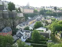 • 🌍 Grund. The Alzette, thought it is very small now, because the sandstone of the area is very soft, it dug out a huge valley. This is called the Ville Basse and is a spectacular area particularly the Grund (Statgrond) which is well worth the time to take a stroll around. The old fortress surrounded this valley. The Venceslas walk (named after Venceslas, Czech king and count of Luxembourg who built much of the fortresses around) leads along the fortresses, protecting the city on one side (and now forming one of the most spectacular "balconies", the Corniche) and the fortress of the Raam plateau on the other.