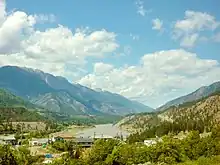 The community included the Village of Lytton and the surrounding community of the Lytton First Nation, whose name for the place is Camchin, also spelled Kumsheen ("river meeting").