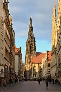 - 🌍 Prinzipalmarkt. The Prinzipalmarkt used to be the city's main market street. It was heavily bombed during the Second World War, but unlike elsewhere, where ruins gave way to faceless blocks of concrete, the houses were rebuilt, some following the original plans and some merely inspired by the old architecture. Try to spot to houses with identical gables (hint: there aren't any, but they're all pretty). Today it is home to many of the city's more exclusive (some might say posh) shopping establishments.
