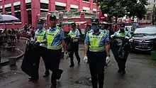 The Public Security Police is tasked with crime prevention and deterrence, traffic control, and immigration duties. Public Security Police officers wear light blue uniforms, and have badges on their uniform. Their police vehicles are painted in dark-blue. In an emergency, particularly imminent crimes against persons, they can be contacted by 999, the unified emergency number for police, fire services and medical emergencies.