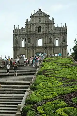 - 🌍 Ruins of St. Paul's Cathedral (Portuguese: Ruinas de São Paulo; Cantonese: 大三巴 daai saam ba). The city's most famous landmark and is regarded as the greatest monument to Christianity in the East. The only thing left of the Church of Mater Dei, built in the 1600s but burnt down in 1835, is the imposing façade, with its Biblical statues and relief, being described as a "sermon in stone" and a "Bible for the poor". Nearby are the remains of the St Paul's College. Behind the façade is the Museum of Sacred Art and Crypt, which occupies the chancel of the church, contains archaeological excavations of the site and also exhibits and paintings on early Christian life in the East. The crypt contains the remains of martyrs of Christians killed in the 17th century.