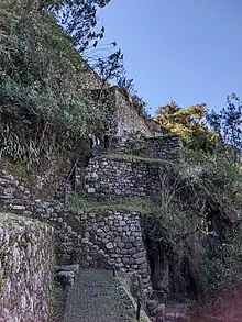 - Machu Picchu Mountain – This is the mountain on which Machu Picchu is located and you can walk to the summit south of the ruins (3040m - Machu Picchu is at around 2,400-2,600m, Macchu Picchu Pueblo (Aguas Calientes) is at around 2,000m). Like Wayna Picchu you will have spectacular views, and it will cost you less. It used to have no entrance fee, but as of November 2017, tickets have to be purchased up front, just like for the site itself. Tickets can be purchased in advance, for one of two groups: 07:00-08:00 or 09:00-10:00. The path to Machu Picchu Mountain can be found along the path to the Sun Gate. Machu Picchu Mountain is among the least visited sites at Machu Picchu, which will give you the opportunity to get away from the tourist crowds. For the round trip you should plan on 2½-3 hours. Bring lots of water, as the hike is strenuous. You are not officially allowed to bring food, but may regret not having some snacks. Expect a hike similar to the one from Macchu Picchu Pueblo to the site in style, but longer, and with steeper steps. The trail is spectacular, even if you don't reach the summit.