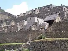 Machu Picchu was built in the classical Inca style, with polished dry-stone walls. Its primary buildings are the Intihuatana, the Temple of the Sun, and the Room of the Three Windows. These are in what is known by archaeologists as the Sacred District of Machu Picchu.