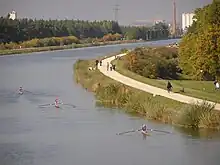 This canal was constructed starting in the 1960s and was opened along its full length in 1992. It was originally intended as a freight link, linking – as was said at the time, grandiosely but not inaccurately – the North and Black Seas via the river system of Main, Rhine and Danube. The canal reaches the highest point directly reachable via ocean going vessel in the world. Yet rail and trucking play vastly larger roles in the freight business along its entire stretch and the canal never earned enough in usage fees to pay for its upkeep and maintenance. An unintended but serendipitous consequence of its construction is converting inland cities like Nuremberg into cruise ports, and river cruises have become an important business factor even though the freight business is largely an afterthought. The canal is also a frequently used hiking and biking route with decent trails along its relatively flat banks, with several bridges and underpasses from one side to the other. It is also used by various sports clubs that use rowboats and other human-powered boats. There are also some yacht clubs along the canal.