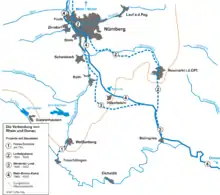 The Main-Danube Canal (Main Donau Kanal) also known as the Europakanal ("Europe Canal") or the Rhein-Main Donau Kanal (abbreviated RMD) is mostly in Franconia (Upper and Middle Franconia) and partly in Bavaria (Lower Bavaria and two short stretches in Upper Palatinate). It links the Danube with the Main, a tributary of the Rhine, and thus the Black Sea to the North Sea. Its official end to end length is 170.71 km (106.07 mi).