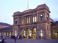 Mainz has several train stations. The biggest and the only one in which InterCity and InterCityExpress trains stop is 🌍 Mainz Hauptbahnhof (main station), it is on the western edge of the city centre and works as a general hub for local traffic.
