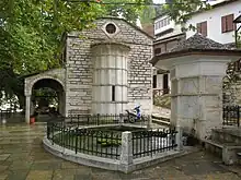 One of the most characteristic traditional settlements on mount Pelion. It is filled with mansions and houses from the Ottoman era that look like hanging ornaments on the green mountain side and are colorful (but not as Portaria). Many of these have been restored into restaurants and guesthouses. It sits on a slope of the Pelion range and another mountaintop to the east with forests, at a height of about 500 m (1,600 ft) above sea level. The square with age-old trees lends a panoramic view of Volos and the Pagasetic Gulf. In one of the traditional coffee houses there is a big fresco by the 20th century naïve folkloristic artist Theofilos. The picturesque cobbled paths of Makrinitsa are scattered with traditional water fountains. Makrynitsa, with a population of about 900 people, has a school, a lyceum, a church, a post office and a square (plateia) with tall trees.