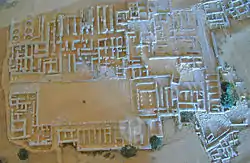 The palace of Malia, dating from the Middle Bronze Age, was destroyed by an earthquake during the Late Bronze Age, Knossos and other sites were also destroyed at that time. The palace was later rebuilt toward the end of the Late Bronze Age. Most of the ruins visible today date from this second period of construction. The palace features a giant central courtyard, 48 m x 23 m in size. On the south side are two sets of steps leading upwards and a maze of tiny rooms. Also here is a strange carved stone called a kernos stone, which looks like a millstone with a cup attached to the side of it. On the north side of the courtyard were storage rooms with giant earthenware pithos jars, up to two metres tall. These were used for holding grain, olive oil and other liquids; the floor of these rooms has a complex drainage system for carrying away spilled liquids.