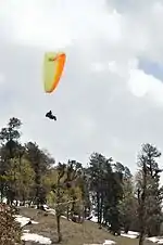 - Paragliding- Paragliding is quite popular in Manali, especially in the peak season. The scene is located at Solang Valley. There are multiple levels, starting from the basic 1-minute flying for ₹450 (the most common), progressing to a more fun 5-minute flight for ₹1500. But the ultimate is the half an hour flight for ₹2500, for which they take you up almost halfway to Rohtang, and bring you back to Solang all the way by paragliding. In such a long flight, wind plays a big role, and sometimes it is not possible to fly all the way to Solang, something to keep in mind while going for it. Generally, later in the day you go for it, better are the chances you will do the whole flight. However, before you decide to paraglide in Manali, have a look at the "Stay safe" section of this article.