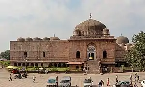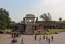 - π Ashrafi Mahal and Mahmud Khalji's Tomb, Opposite Jami Masjid. Located opposite the Jami Masjid. The Ashrafi Mahal, probably served as a madrasa (Islamic school), adjacent to the Mosque, during the reign of Mahmud Khilji (1436 - 69). With the passage of time the Ashrafi Mahal has been reconstructed and extended several times and also have been used for several other purposes. Even the central open courtyard of the madrasa was later used for the construction of the massive tomb of Mahmud Khalji. The tomb has long collapsed. Today the Ashrafi Mahal is approached through a long flight of stairs and through a marble pavilion. The dome that crowned the pavilion has long collapsed. A passageway from the pavilion leads to a open courtyard, which once housed the tomb of Mahmud Khalji. The courtyard is lined with small cells on all four sides. The cells probably served as living quarters of students. On the four corners were minarets and during the reign of Mahmud Khalji, the minarets at the north west corner was converted into victory tower, to celebrate his victory over the Rana of Chittoor. The tower also has long collapsed and its foundation is all that remains. Incidentally the Rana of Chitoor also built a victory tower, which stands to this day.