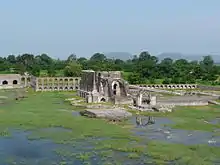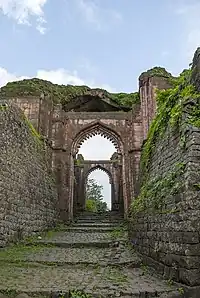 - π Kamani Darwaza. This gate is north of Delhi Gate and is part of the series of gateways on the northern approach of Mandu. This was built as a triple arched gateway but one of the arches has collapsed.