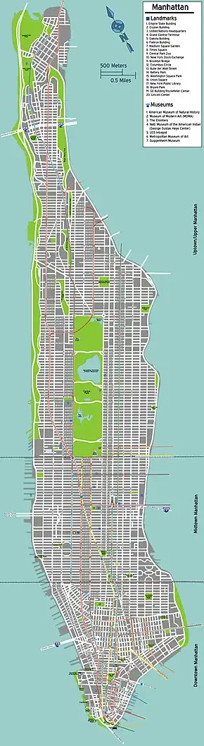 Manhattan is home to many of New York's premier tourist attractions. Following is a selection of the highlights and "must sees" - the remainder will be found within the articles for the various Manhattan districts and neighborhoods.